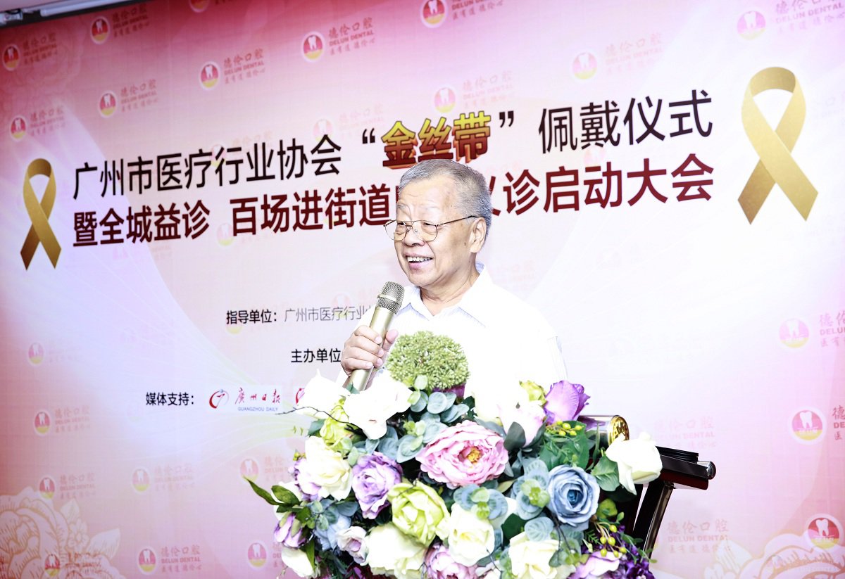 2016年,针对老龄化现状愈趋明显的社会现状,德伦口腔积极响应城市慈善法,在市卫计委、市民政局的指导下,与广州市医疗行业协会共同发起早一批“关爱高龄无牙老人金丝带慈善公益”。金丝带寓意着爱心、关怀、协助,德伦金丝带活动也旨在对帮助牙缺失特殊群体(低保老人、空巢老人、贫困高龄老人等)实施种牙补贴援助,让他们也能拥有一口好牙。