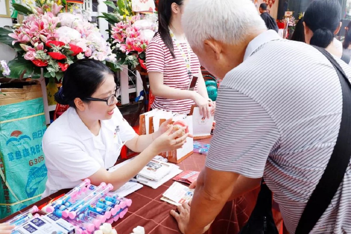 医护人员为路过的市民提供口腔检查,以公益活动回馈市民