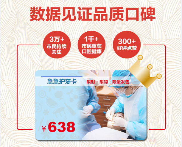 2、一卡防治——牙痛、牙出血、智齿发炎、牙龈红肿、烂牙、缺牙、牙齿不齐等口腔急症问题,您和家人都值得拥有!