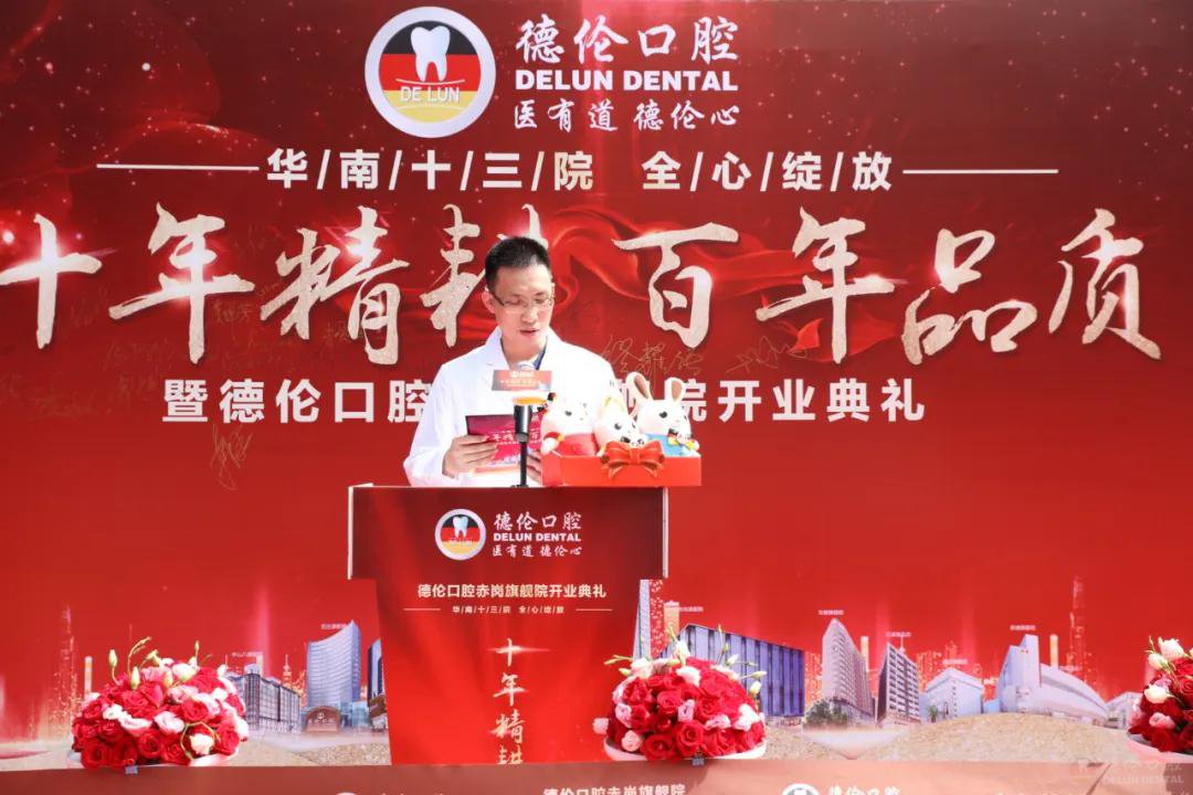 开业盛典伊始,德伦口腔集团正畸技术总监缪耀强院长上台致辞。他提到,2011年德伦口腔在广州正式成立,从当初开始,德伦口腔便坚持以“医有道·德伦心”的理念为广大市民提供可靠、专业的口腔诊疗服务。德伦人精耕德伦之道:包含以“专业严谨,精益求精”的医疗之道,为市民提供精良医技;精耕服务之道,以“服务一次,关爱一生”的服务理念为消费者提供品质服务;精耕管理之道,以“务实快捷,担当共赢”的精神,与合作伙伴共建医疗基业。