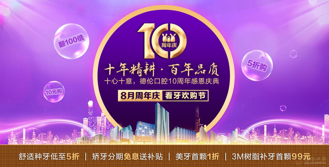 7月,德伦口腔将迎来10周年感恩庆典,为回馈广大羊城市民的支持,德伦口腔将针对所有爱牙市民开设“福利层层叠,只为全心回馈你”福利,同时还有更多优惠放出!