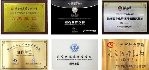 成立至今,德伦口腔凭借专业的技术与优质的服务,荣获“广州市医保定点机构”、“口腔医疗机构感染预防与控制A级单位”、“广东省临床医学学会理事单位”、“广州医科大学口腔医学联盟合作单位”“2019中国连锁民营口腔机构十大品牌企业”等各大政府机构及行业的荣誉资质认证。