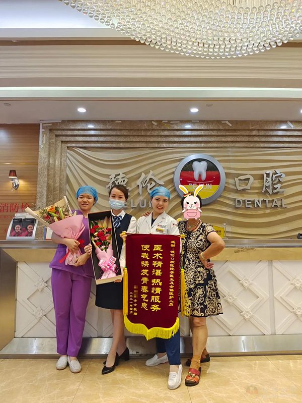 对于缺牙的人开心的莫过于修复好牙齿后吃啥都有口福,所以在完成治疗后,68岁的芦阿姨将一面绣有“医术精湛 热情服务 使我焕发青春气息”的锦旗赠予德伦口腔中山八旗舰院全科兼种植科医生李文英,向李医生表达了浓浓的谢意。
