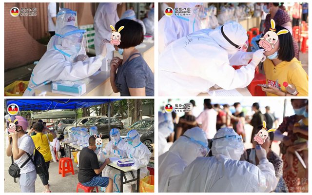 5月28日-6月29日,德伦口腔积极响应省、市、区号召,第一时间抽调精锐力量支援多区核酸采集和疫苗接种工作,共计派出55批次340多人次驰援海珠、天河、越秀多区核酸采样。