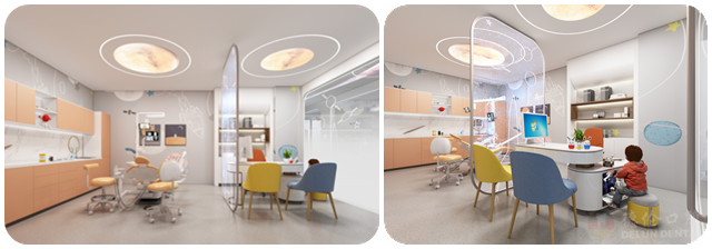 德伦口腔儿童齿科打造成太空宇宙主题的初衷就是为了让孩子们打破看牙的刻板印象,看牙不再是冷冰冰的诊室,而是充满童趣和温度的。太空主题小乐园带给孩子们温馨又舒适的感觉,可大大降低孩子的恐惧,让孩子们从此爱上看牙!