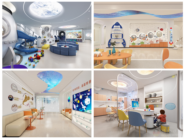 2021年12月,德伦口腔儿童齿科旗舰中心开业,院内布满太空宇航气息的装修风格,让孩子舒适、快乐看牙。
