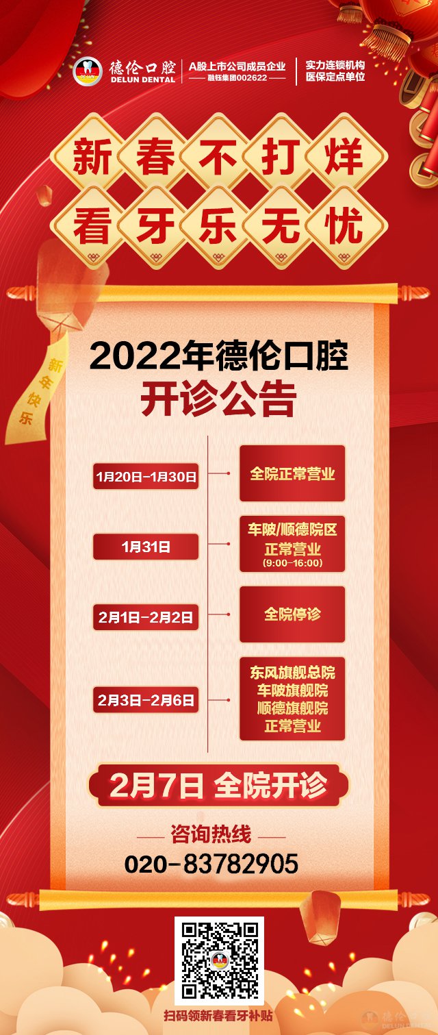 吉祥如意庆虎年,欢天喜地过大年。德伦口腔全体同仁给您拜年了!祝您新的一年身体健康,万事如意,好牙好口福!