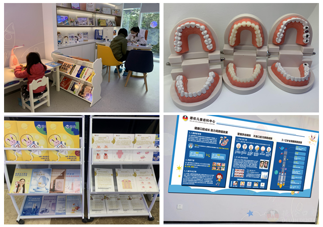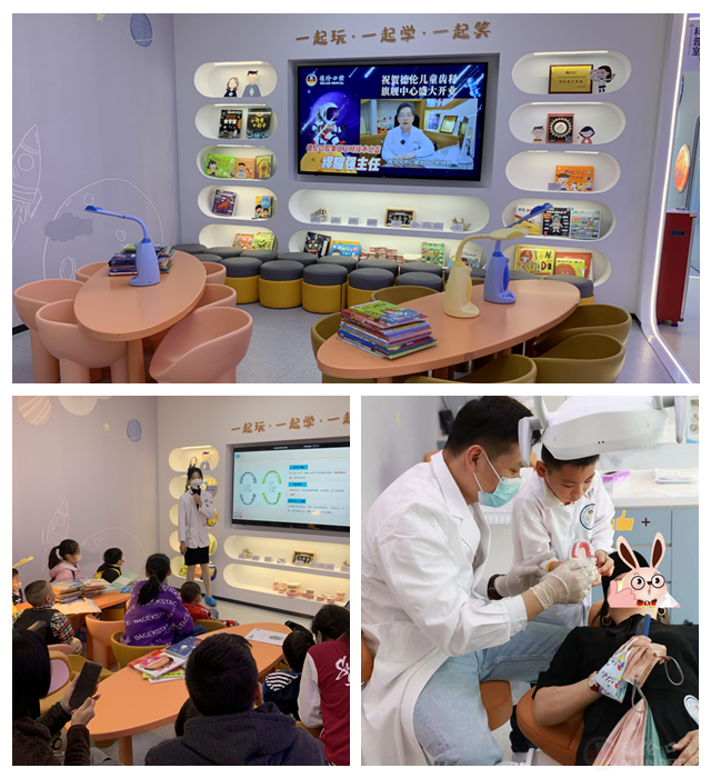 基地主体功能主要涵盖趣味互动区、知识宣教区、牙模陈列区、刷牙指导区、科普阅读区、器械及角色体验区、灌模体验区七大功能区域,结合科普宣教、科学实验、角色实践等多形式、多维度的方式,通过利用现场真实牙椅演练、口腔器械及相关道具操作、口腔科普绘本认知指导、口腔健康视频解说演示、牙齿标本及模型展示等,让孩子们认识口腔构造、牙齿排列和布局及其生命周期,在寓教于乐中学习口腔健康知识,营造特色服务体验,培养孩子们养成识牙、爱牙、护牙的良好习惯。