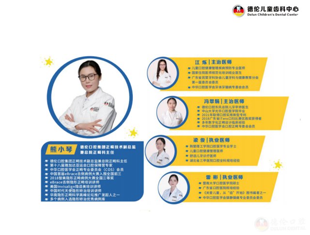 德伦口腔儿童齿科中心成立于2011年,是德伦口腔的特色科室,由熊小琴院长与江烁主任领衔,拥有独立的儿牙诊室,科室设施完善,环境舒适温馨,是广东省内率先设立儿童错颌畸形早期矫治的特色门诊。科室倡导“快乐看牙”模式,专业儿牙医护团队针对不同孩子看牙需求,从孩子的心理入手,采取包括心理安慰,行为引导、笑气镇静、儿童全麻治疗等多样化舒适治疗方案,让孩子无惧看牙。
